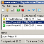 Description: A small utility designed to help you become more accurate and realistic about your predictions and promises. Add items like “Number of pages I will write this week” or “Number of pounds i will lose this month”, and provide your predicted/promised values. Then, at the end of the time period, record your actual achieved values. Bestimate keeps track of how far off you were from your initial prediction/promise. Note that this program is intended to help you become more realistic about your predictions, so being off in either direction is just as bad!